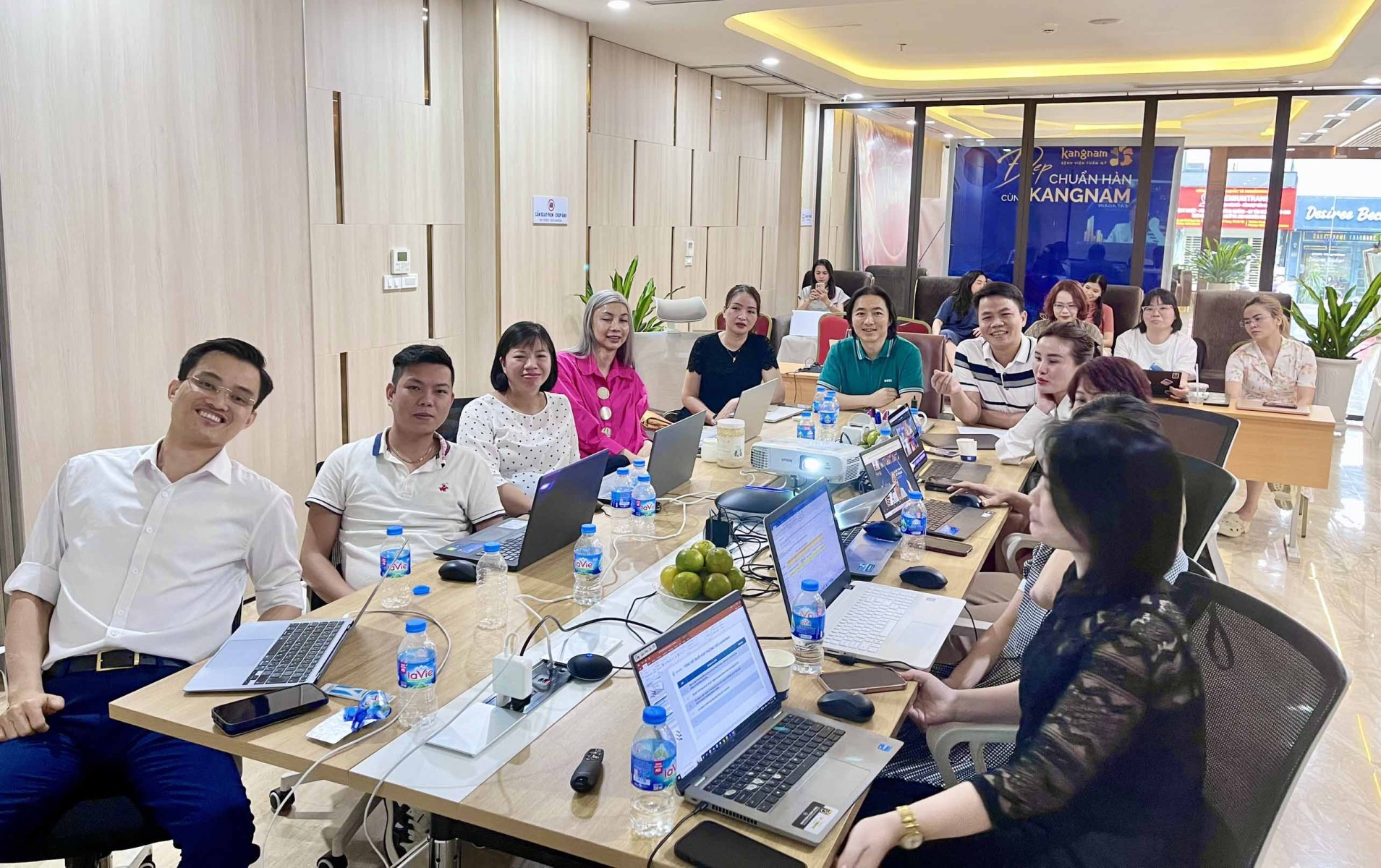 Tham dự cuộc họp có Phó Chủ tịch HĐQT Tập đoàn, Phó Tổng Giám đốc, Bà Hán Thị Linh Nhung; Phó Tổng Giám đốc Tập đoàn, Ông Nguyễn Bá Úy, cùng các thành viên Ban Điều hành Tập đoàn và Thương hiệu Thẩm mỹ Kangnam.