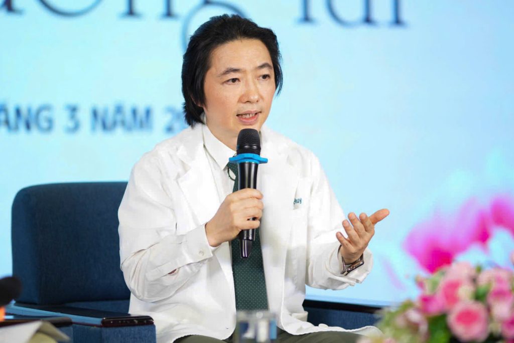 TS.BS Võ Tiến Huy, Giám đốc chuyên môn Bệnh viện Thẩm mỹ Kangnam chia sẻ tại chương trình “Làm đẹp an toàn – Làm chủ tương lai”. Ảnh: Quang Liêm.