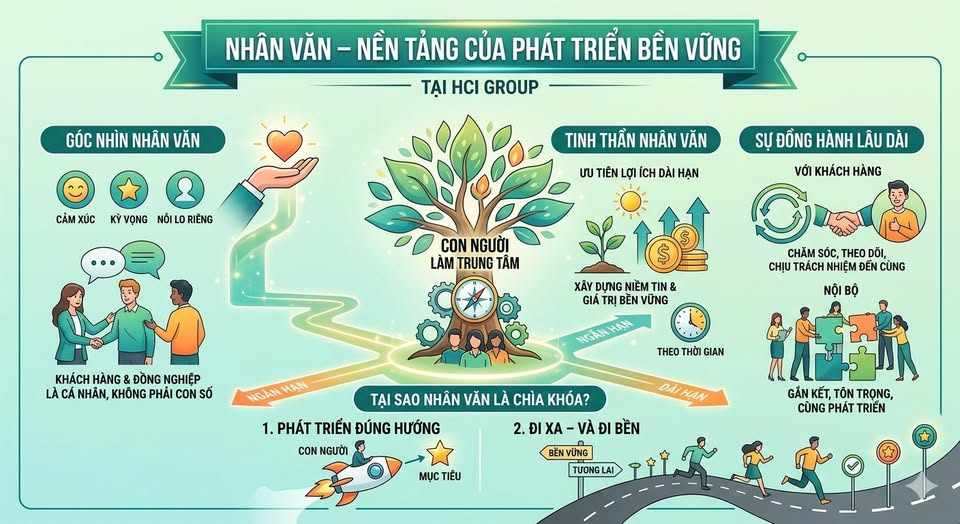 “Nhân văn” tại HCI Group là nguyên tắc xuyên suốt, lấy con người làm trung tâm trong mọi hoạt động.